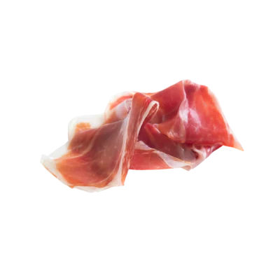 Scheur de sneetjes serranoham in kleinere stukken en spreid ze uit tussen de pompoenstukken.