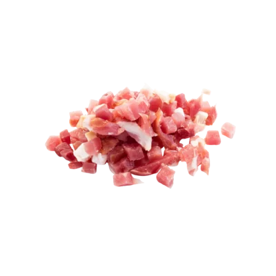 Snij de aardbeien in kwartjes. Bak de spekjes krokant in een antikleefpan. Hak de pecannoten grof.