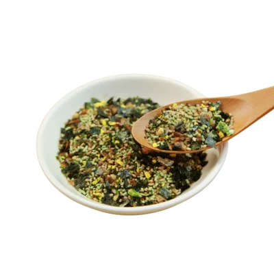 Breng vervolgens op smaak met bieslook, mayonaise, limoenzeste, sesamolie, furikaké en een beetje sojasaus.